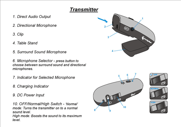 Just give the transmitter to the speaker, or place it near the presenter, and you will be able to hear everything that they say.